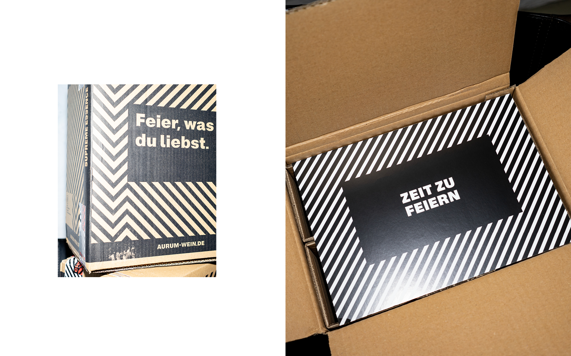 Wir entwickelten eine Markenidentität, die sich bewusst jenseits der gewohnten Bildwelten des Weinmarktes positioniert. Das visuelle Konzept kombiniert kontrastreiche grafische Muster, kräftige Typografie und markante Farbakzente zu einer progressiven Formsprache. Ergänzt wird das Branding durch prägnante Claims wie „Uncork the good vibes“, „Feier, was du liebst“ und „Es ist Zeit zu feiern“, die den kommunikativen Ausdruck der Marke verstärken. So entsteht ein klarer, mutiger Auftritt, der die Haltung von AURUM Wein transportiert und die Marke im urbanen Lifestyle-Kontext verankert.