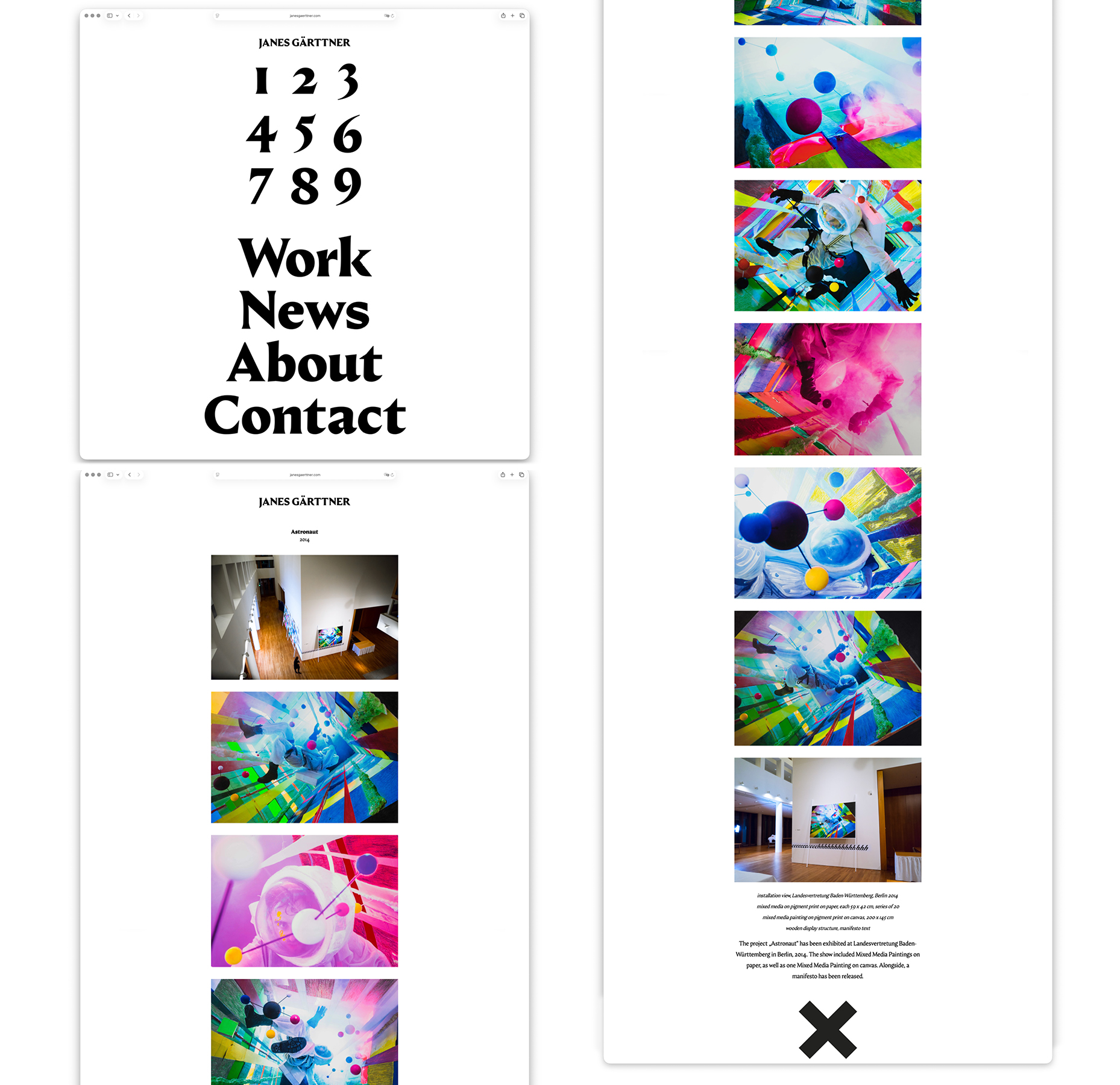 In kollaborativer Zusammenarbeit mit dem Berliner Künstler Janes Gärttner entstand ein ein visuelles Erscheinungsbild für Ausstellungen und die digitale Präsenz. Der Gestaltungsprozess war geprägt von intensivem Austausch und einem konzeptionellen Entwurfs-Pingpong, bei dem künstlerische Haltung und grafische Sprache kontinuierlich aufeinander reagierten.
